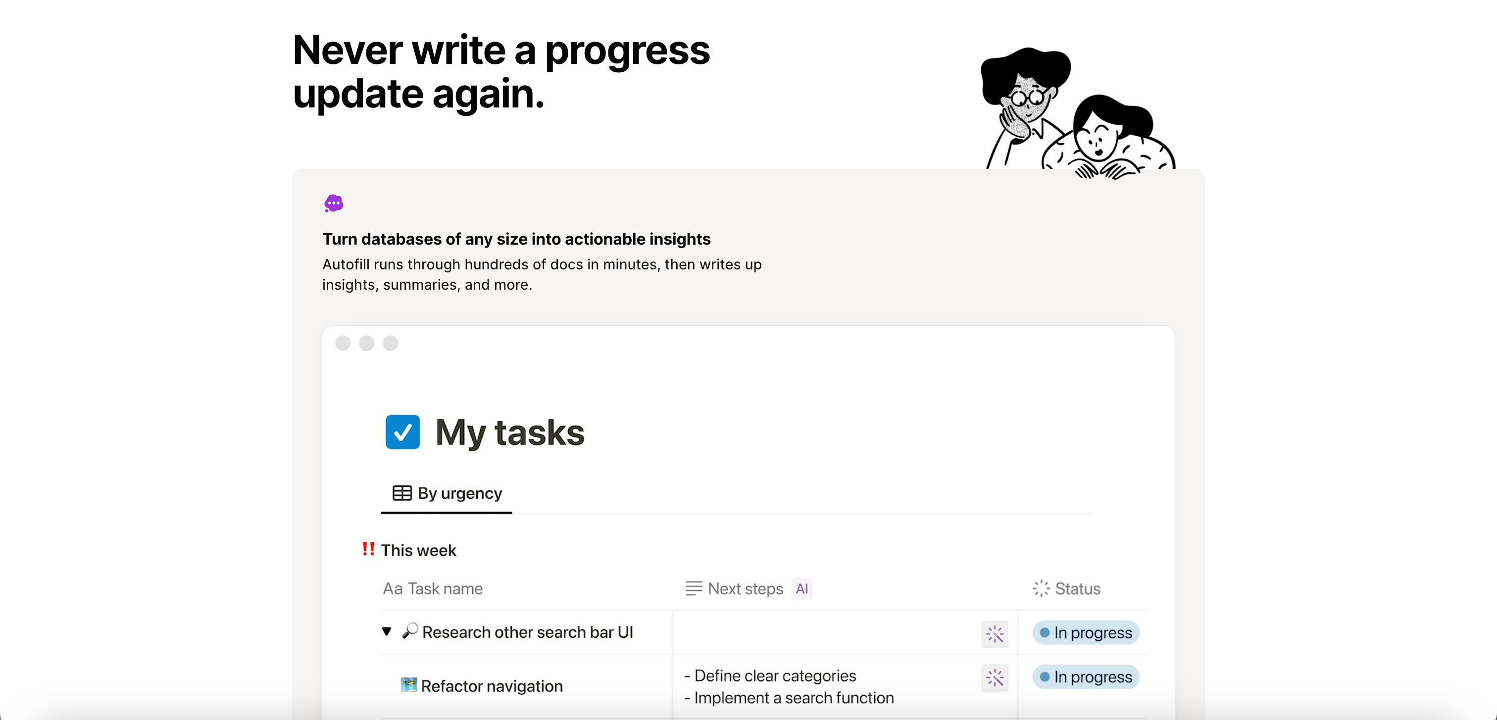As Notion AI is integrated into Notion databases, it automates and auto-fills cells, which allows users to focus on more strategic and creative work.