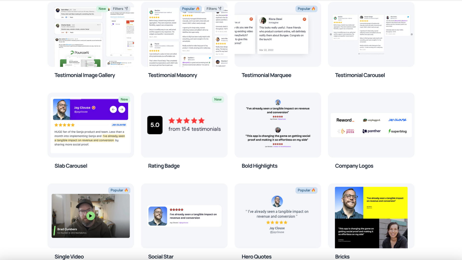 Aesthetic testimonial widgets & diverse formats