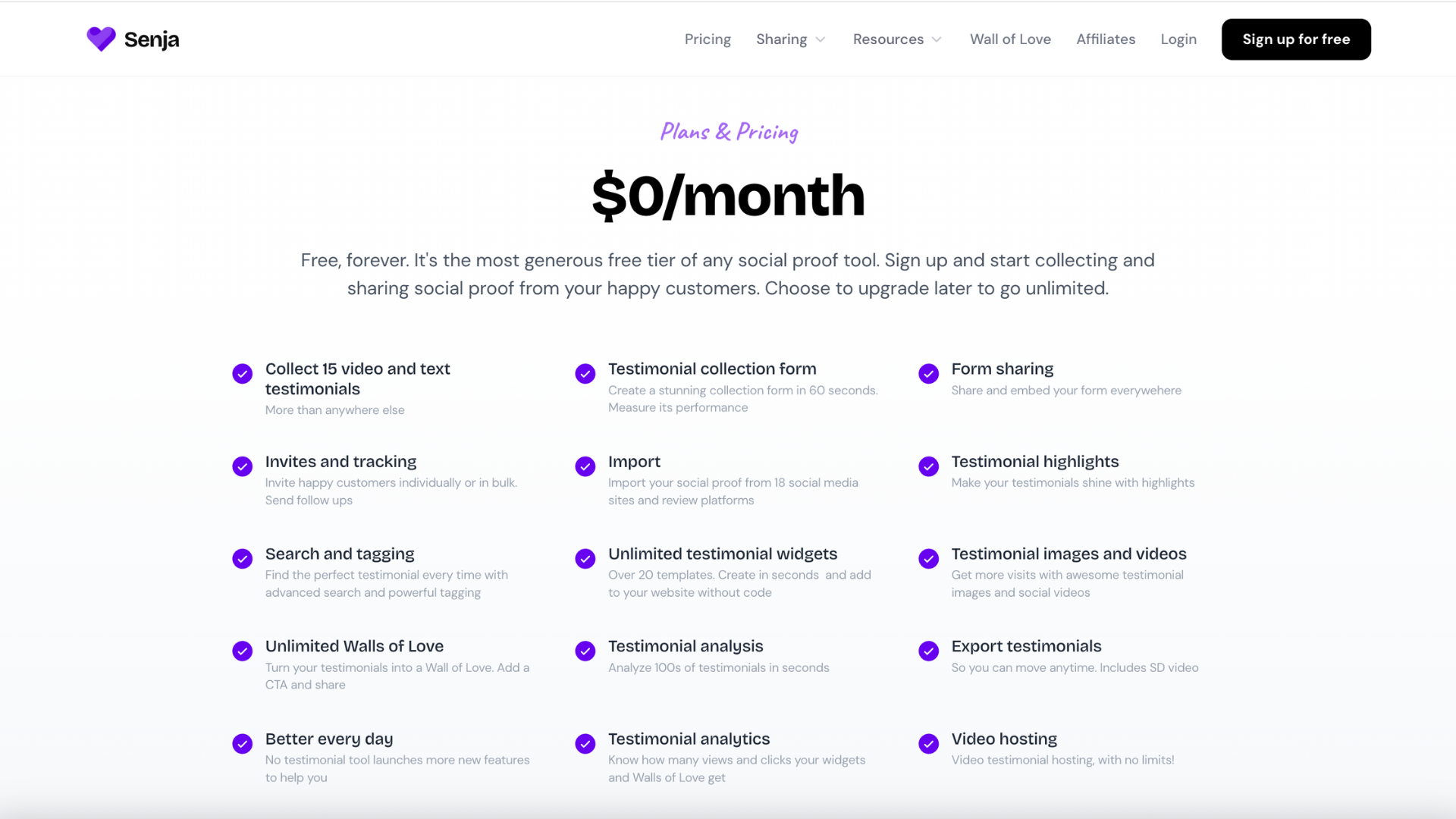 Free Plan: Ideal for individuals or small businesses just starting out with 15 video and text testimonials. It includes basic features such as collecting and showcasing testimonials but with limited functionality.