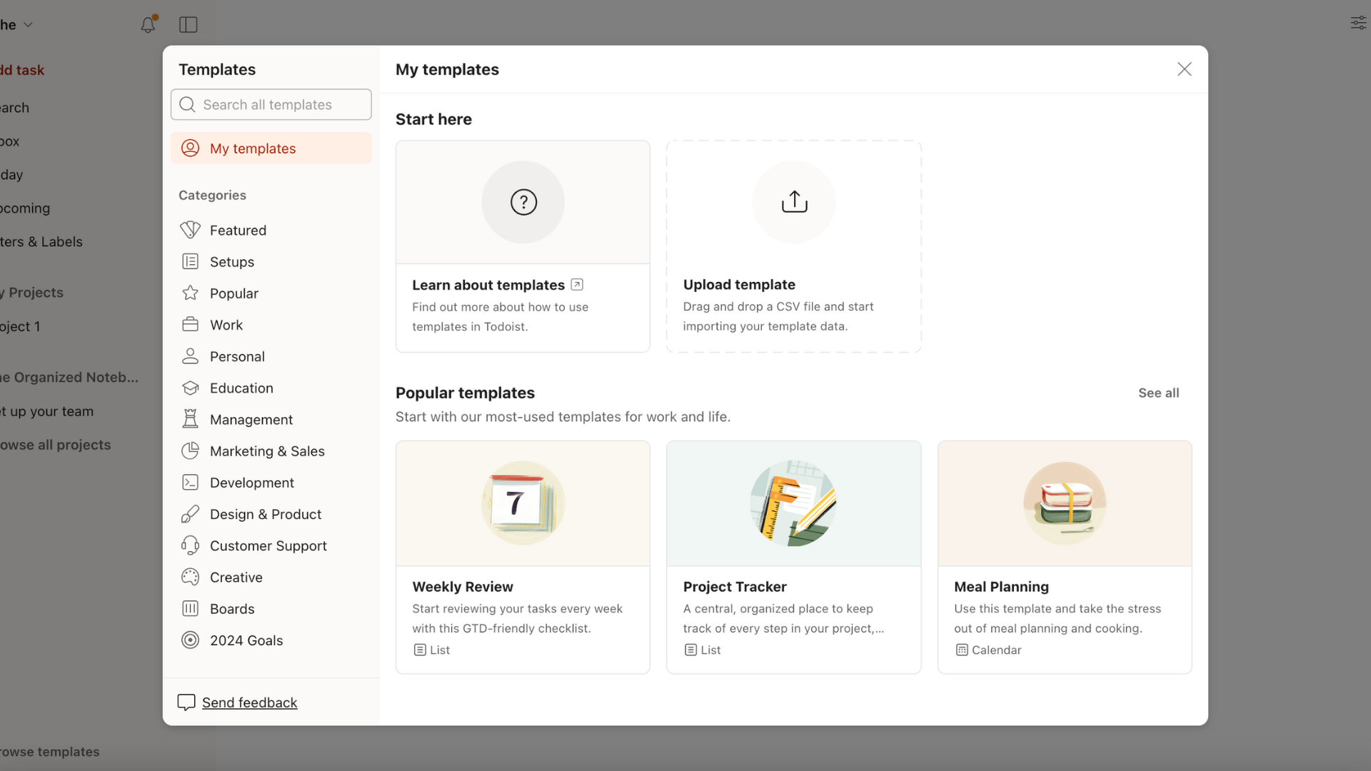 We recommend trying the free version of Todoist to see if it meets your needs. Moreover, Todoist also offers a wide variety of templates to help you get started. Check out the templates below!