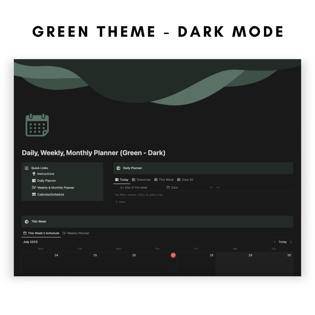 Each planner comes with two versions so that it is light and dark mode compatible. We designed the planner in every Notion colorway so that you can enjoy a color coordinated planner!