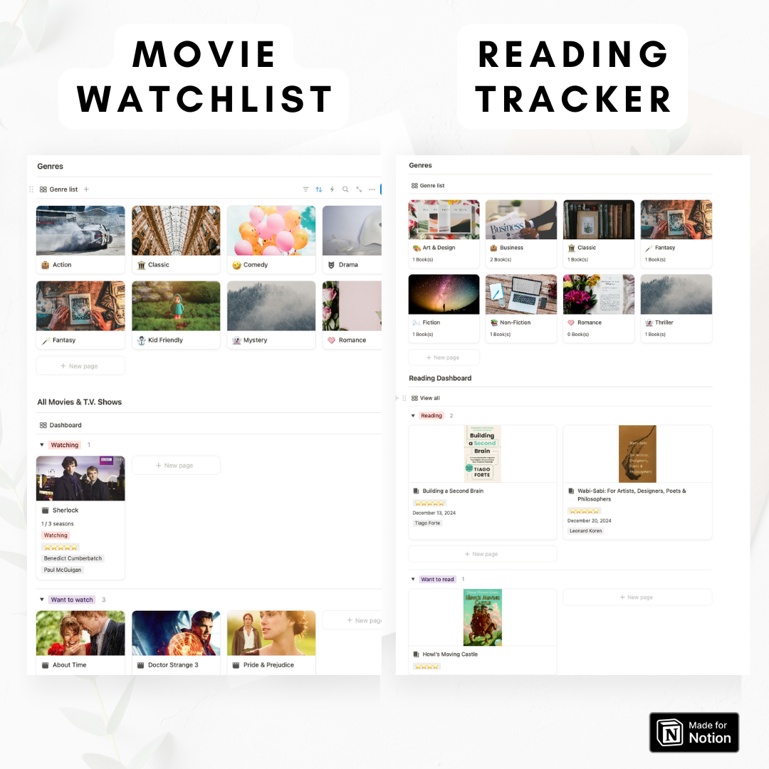 - Movie & T.V. Watchlist: Organize your watchlist so you know what to watch next.